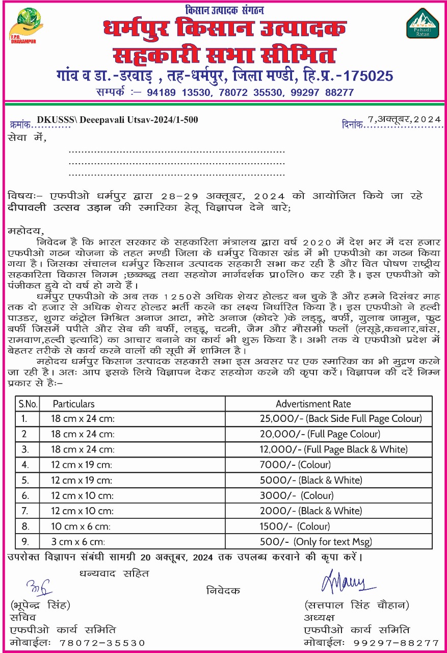 Dharampur FPO was established in the month of September 2022, with the help of NCDC, Regional office Shimla.